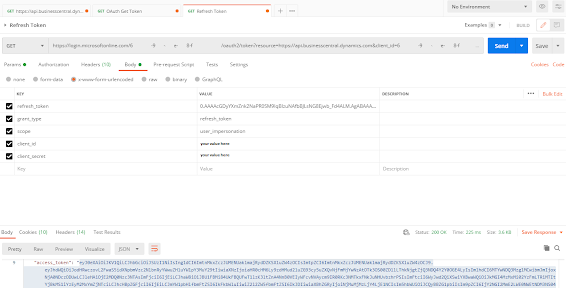 If you have waited too long to do this and you find that your token has expired, there are two ways to get a new one. You can always create a new one in Postman, or you can use the refresh token (assuming you have it) to generate a new auth token. I took the second route.